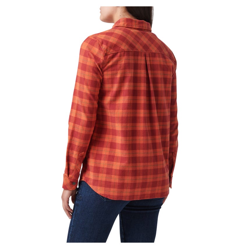 Flannel shirts are made for outdoor adventures and going out on the town. Our new Ruth Flannel Long Sleeve Shirt is already one of our favorites. This long-sleeve shirt features 100% cotton that has been brushed for a soft, cozy feel. To keep up with your active lifestyle, the Ruth Flannel Long Sleeve Shirt features a flattering classic fit and a back pleat for extra mobility. Stash your phone, earbuds or other accessories in the two chest pockets. We also included a pen guide to keep a writing instrument on hand. This versatile top pairs well with your 5.11 jeans and pants.