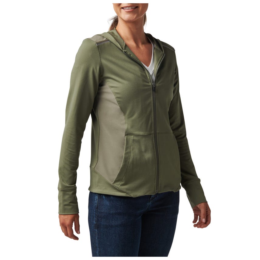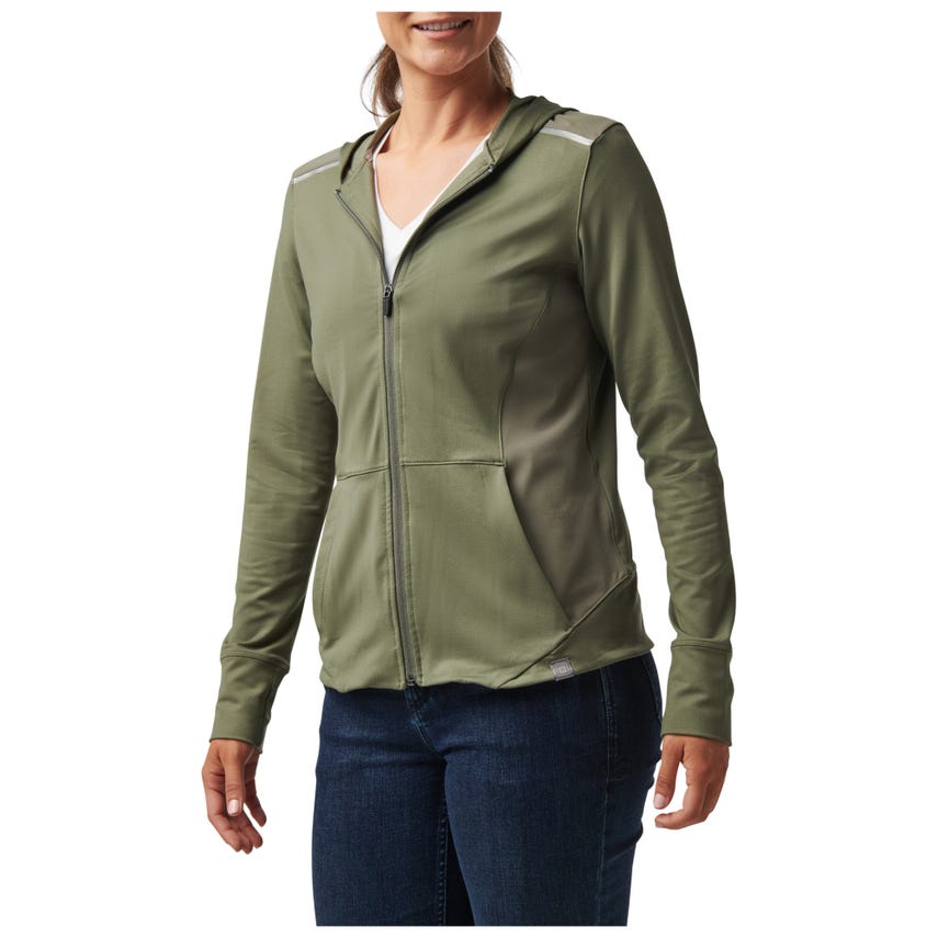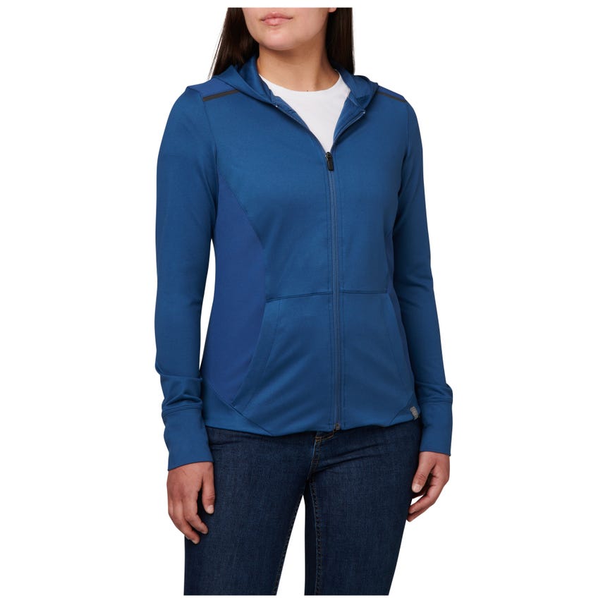 If you like starting your morning with a run or a trip to the gym, you will love our Selma Full Zip. The Selma features a feminine silhouette constructed from a soft yet durable 90-percent polyester and 10-percent elastane terry knit. For extra abrasion resistance, we reinforced the jacket with polyester and elastane stretch panels with Enduro-Flex��. A three-panel contoured hood protects you from the elements, while the split kangaroo pocket keeps your hands warm. Secure your keys, phone and other essentials inside the hidden pockets. If you��re up before the sun, reflective tape on the shoulders will help others spot you. Slip on the Selma Full Zip and don��t look back.