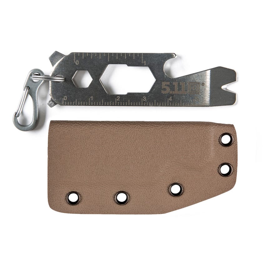 Because carrying a bottle opener, pry tool, wire stripper, hex wrench, screw driver and rulers – even in our roomiest cargo pants – isn’t ideal, 5.11 presents the EDT Multitool. Constructed with super-strong stainless steel, it’s 10 tools built into one, compact piece. And it travels safely and securely in the kydex sheath with a carabiner to clip to your belt loop or pack. Go nowhere without it.