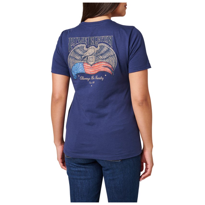 Unleash your inner aviator with the Women's Birds & Banners Tee, where retro meets readiness. Featuring an iconic eagle clutching a shield with "Live Free" proudly above, it's a nod to the land of the brave. Made from a ringspun cotton/poly blend, this tee ensures comfort while its fade-resistant inks keep the design vivid. A stylish salute to freedom that stands the test of time.