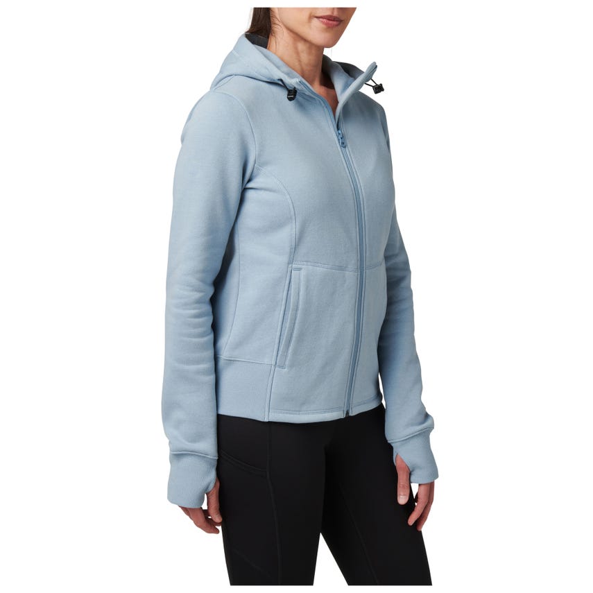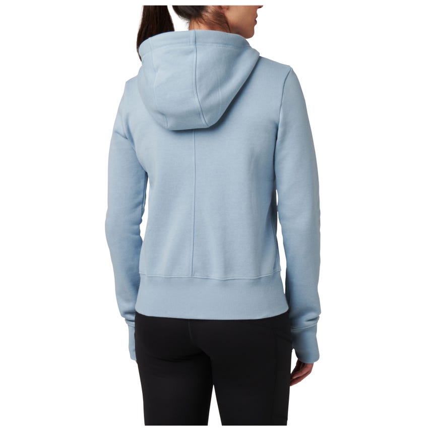 When the temperature suddenly drops, our Kimmie Full Zip Hoodie offers a warm hug. The 60% cotton and 40% cotton fleece construction provides a cozy outer layer on cool days and doubles as an inner layer when the mercury really plunges. An internal shock cord system keeps the stationary lined hood in place in heavy winds and while running. A durable front zipper design with chin guard works in tandem with rib knit cuffs and waistband to help beat the cold. Thumbholes hold the sleeves in place when you're training, working, or adding layers. Side entry welt hand pockets keep essential items at hand and fingers toasty warm. A reflective transfer on the right sleeve increases visibility during early morning and late evening runs. Fight the chill, with the Kimmie Full Zip Hoodie.