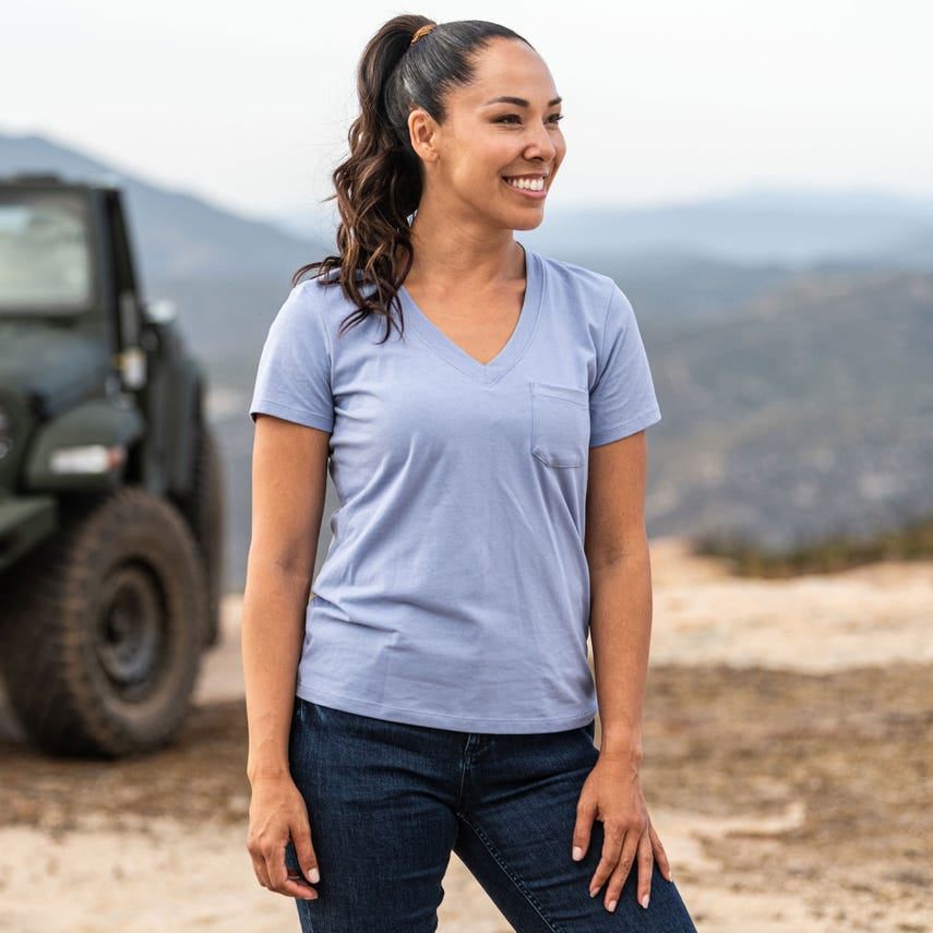 The comfortable tee that says cool, casual style. The Bailey has a tagless label and left chest pocket with pen guide. The V-neck with self-fabric finish neckband creates a soft seam that feels smooth on your skin. The Bailey is an easy top that fits your style just right. Imported.