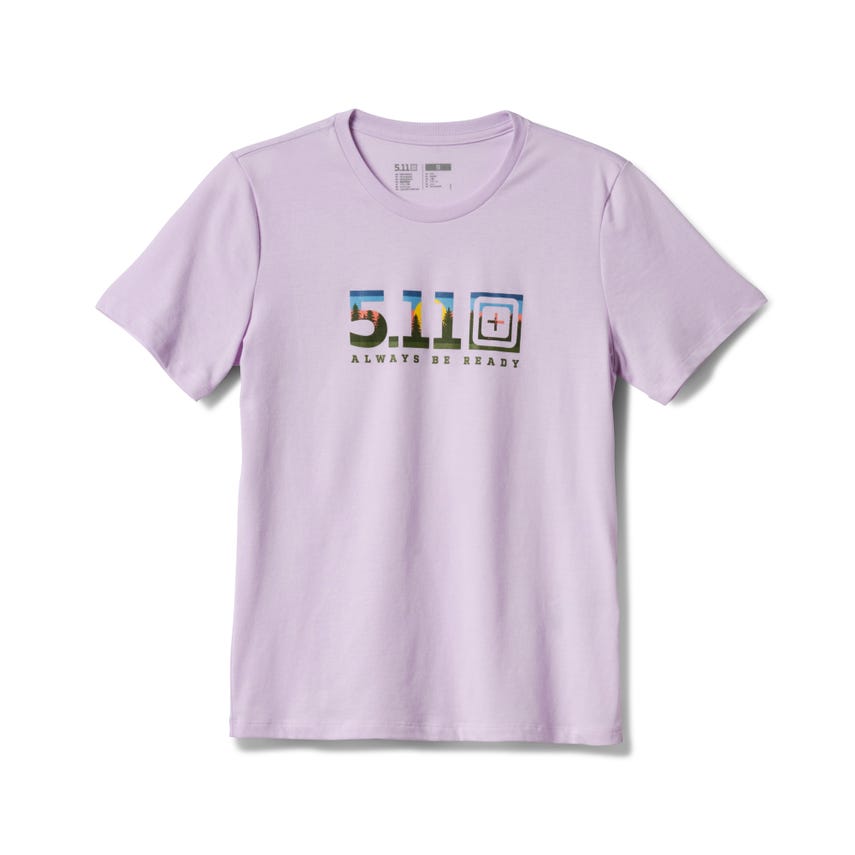 Take your style cues from the horizon with the Women's New Horizon Tee. Featuring the iconic 5.11 and the motto "Always Be Ready," this tee is a nod to those who look to explore new adventures. Crafted from a soft ringspun cotton/poly blend, it combines comfort and durability. The fade-resistant graphic ensures your readiness is always in view, no matter what adventure you embark on.