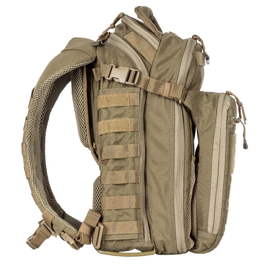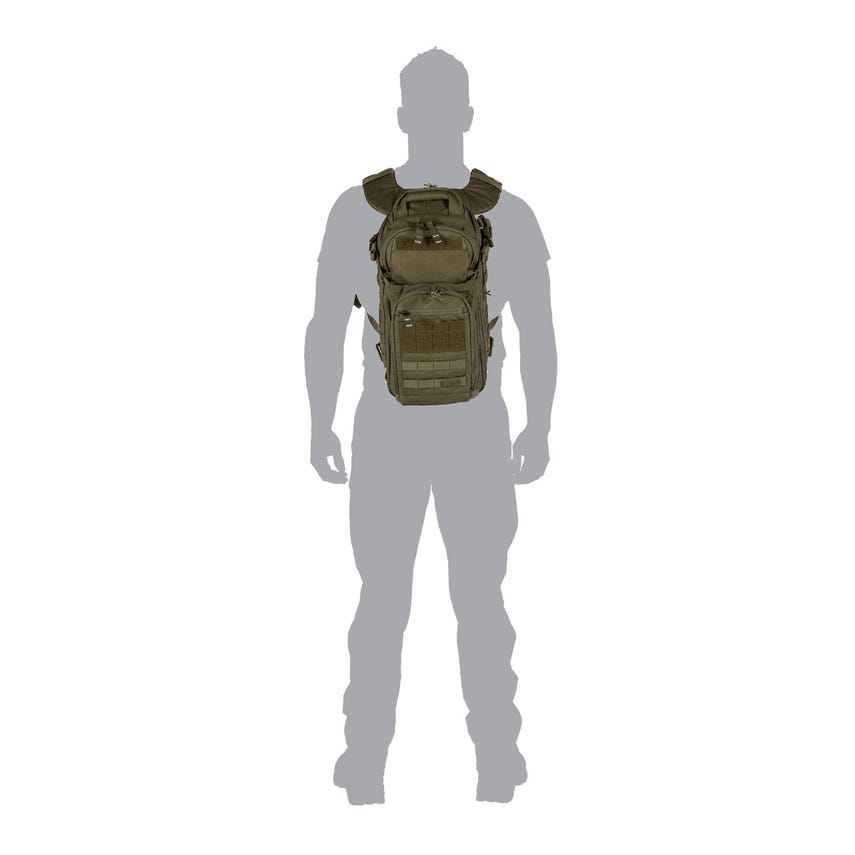 However you need to pack it, carry it, attach it, or stow it, the All Hazards Nitro can handle it. Ruggedly constructed, with plenty of unique features, this compact, fully functional pack is perfect as a carry-on, patrol bag, or long range tactical kit. It has dual main compartments, a bucket-lid opening for easy access, pass-through slots for breaching tools or a baton, loop patches, and a MOLLE-and SlickStick®-compatible web platform on three sides and bottom lash points. The lining is none other than orange to make identifying your gear in low-light much easier. And the all-purpose shove-it pocket holds your helmet or extra cargo. For those who prefer to take the fight with them, this is the bag of the brave. Imported.