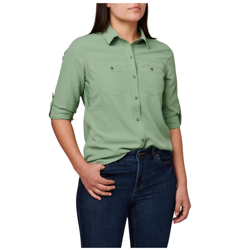 Range-ready style that's built to last. 50+ UPF rating keeps you protected from the sun whether you're on duty or off. Professional and functional with a long sleeve style, two-piece collar, and adjustable sleeve button cuff. RAPIDraw™ front placket for easy wear. Vent-Tac™ gusseted mesh under arm vents, side seam vents, and moisture wicking finish keep you cool when the mercury is on the rise. Imported.
