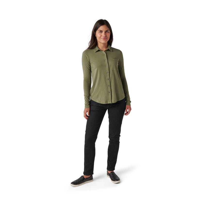 When you need a versatile top that will transition from work to the range and then out to dinner afterward, reach for the Quinn Long Sleeve Shirt. This casual shirt features a comfortable blend of cotton and super-soft modal with a touch of elastane for stretch. A stylish two-piece collar is designed to maintain its shape while traveling or stored in a gym locker. The shirttail hem can be worn tucked or untucked—perfect for pairing with pants or jeans. Snap buttons and a chest pocket with pen guide add chic functionality.
