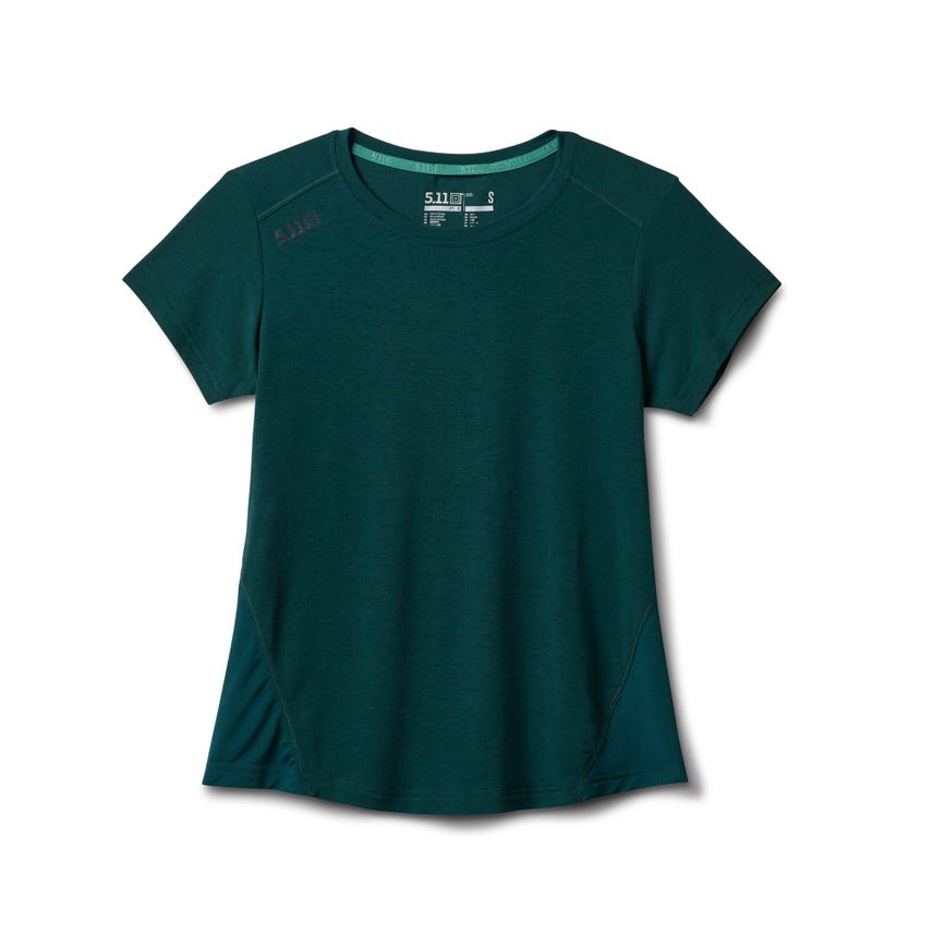 Set the pace with the PT-R Interval Short Sleeve Tee. This performance short sleeve shirt wicks moisture and combats odor during intense training sessions. The crewneck-style tee features a self-neck band, 5.11庐 logo neck tape and integrated locker loop for hanging after your workout. A mesh lower back enhances breathability. Reflective transfers at the left side and shoulder ensure visibility during those early morning and late evening runs.