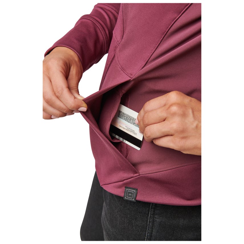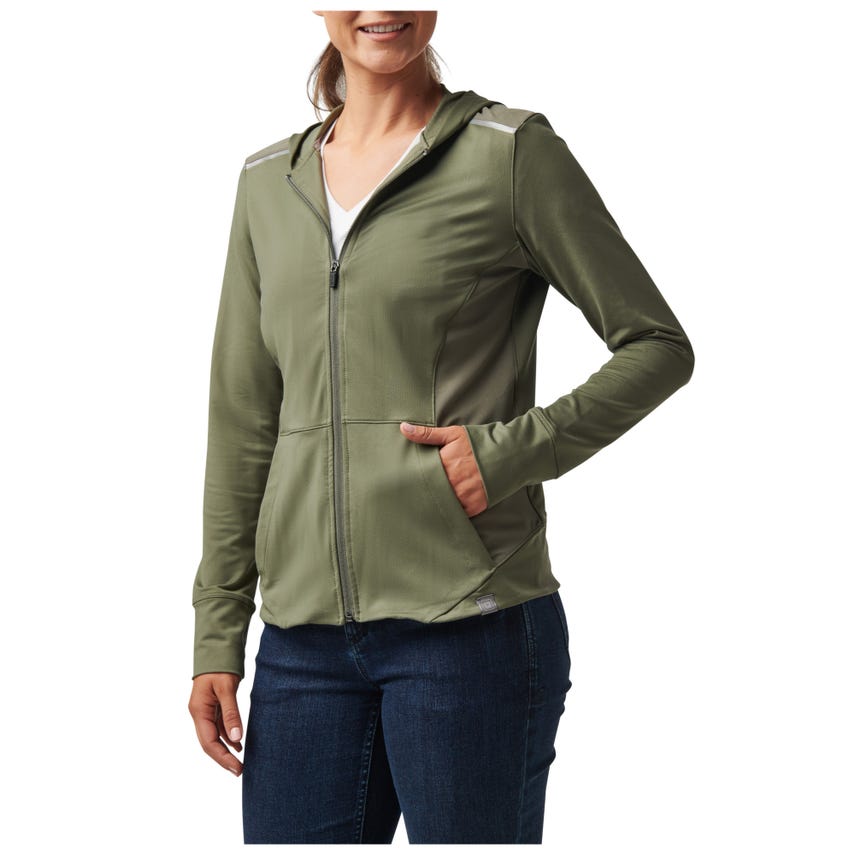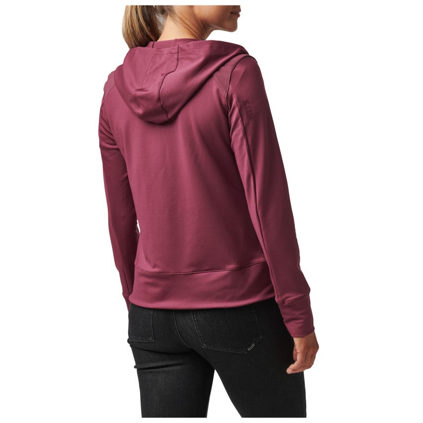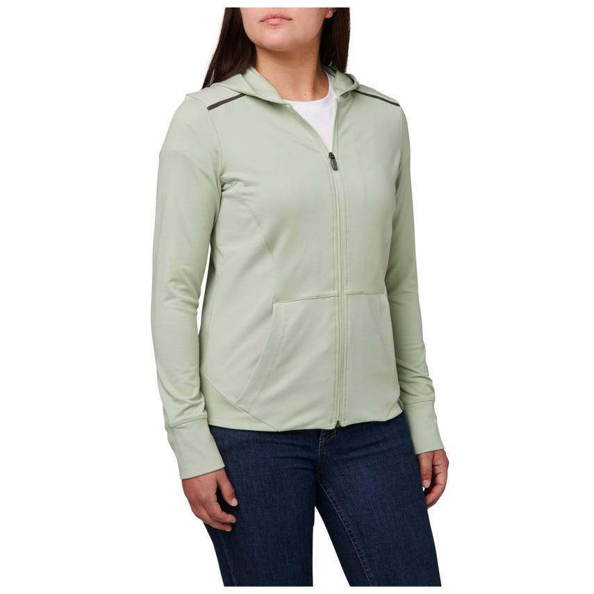 If you like starting your morning with a run or a trip to the gym, you will love our Selma Full Zip. The Selma features a feminine silhouette constructed from a soft yet durable 90-percent polyester and 10-percent elastane terry knit. For extra abrasion resistance, we reinforced the jacket with polyester and elastane stretch panels with Enduro-Flex™. A three-panel contoured hood protects you from the elements, while the split kangaroo pocket keeps your hands warm. Secure your keys, phone and other essentials inside the hidden pockets. If you’re up before the sun, reflective tape on the shoulders will help others spot you. Slip on the Selma Full Zip and don’t look back.