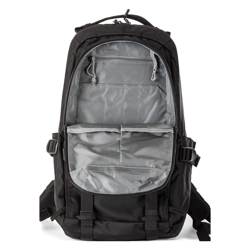Featuring the signature CenterLine™ design from 5.11®, the LVC18 2.0 Backpack is better than ever. All of the Duraflex® buckles have been updated for easier use with gloves. Inside the ambidextrous side entry CCW compartment, the loop area has been increased and a removable holster retention strap has been added so you can customize your loadout. The height of the padded laptop sleeve has been extended and an added security strap keeps your computer safe and secure. The webbing loops give you improved attachment for the 5.11 LVC6 bag for extra cargo storage. Included in the design are side compression straps for external storage and expandable pockets to fit your water bottle. A comfortable padded back panel with a Flex cuff channel makes this pack easy to wear and the front pocket and secondary compartment offer plenty of storage room. The quick-release shoulder straps come with a removable sternum strap so you can get to your gear quick when the seconds count. A tri-glide waist belt attachment has been added for optional support for long treks. All of this is topped off with tuckable logos to help you keep a low profile.