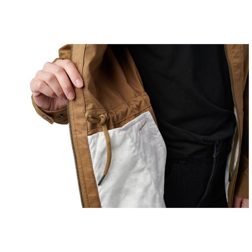 You��ll love this classic field jacket style that��s both functional and versatile. The Tatum Jacket is made from incredibly durable Flex-Tac庐 canvas. Its mechanical stretch and articulated sleeves give you full range of motion. A Teflon�� finish repels rain, fluids and stains, making this jacket a perfect choice for travel. The Tatum is built to carry. Two chest patch pockets and two exterior hand pockets keep your phone and other accessories secure with flaps closed by concealed snaps. An internal draw-cord at the waist lets you adjust the fit, while a two-way zipper offers quick on and off when you��re on the go.